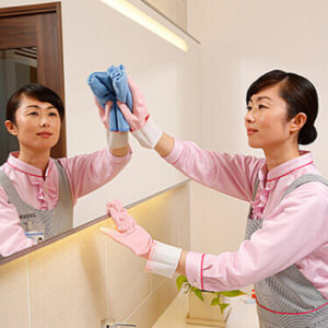 "メリーメイド"の洗面所クリーニングサービスでは、お客様の洗面所を衛生的で美しい空間にすることを目指しています。専門の清掃スタッフが、洗面台、鏡、蛇口、キャビネットなど、洗面所のあらゆる部分を丁寧にクリーニングします。特に、水垢や石鹸カス、歯磨き粉の残りかすなど、日々の使用で蓄積しやすい汚れに対して、効果的な清掃方法と専門の清掃剤を使用して徹底的に対処します。